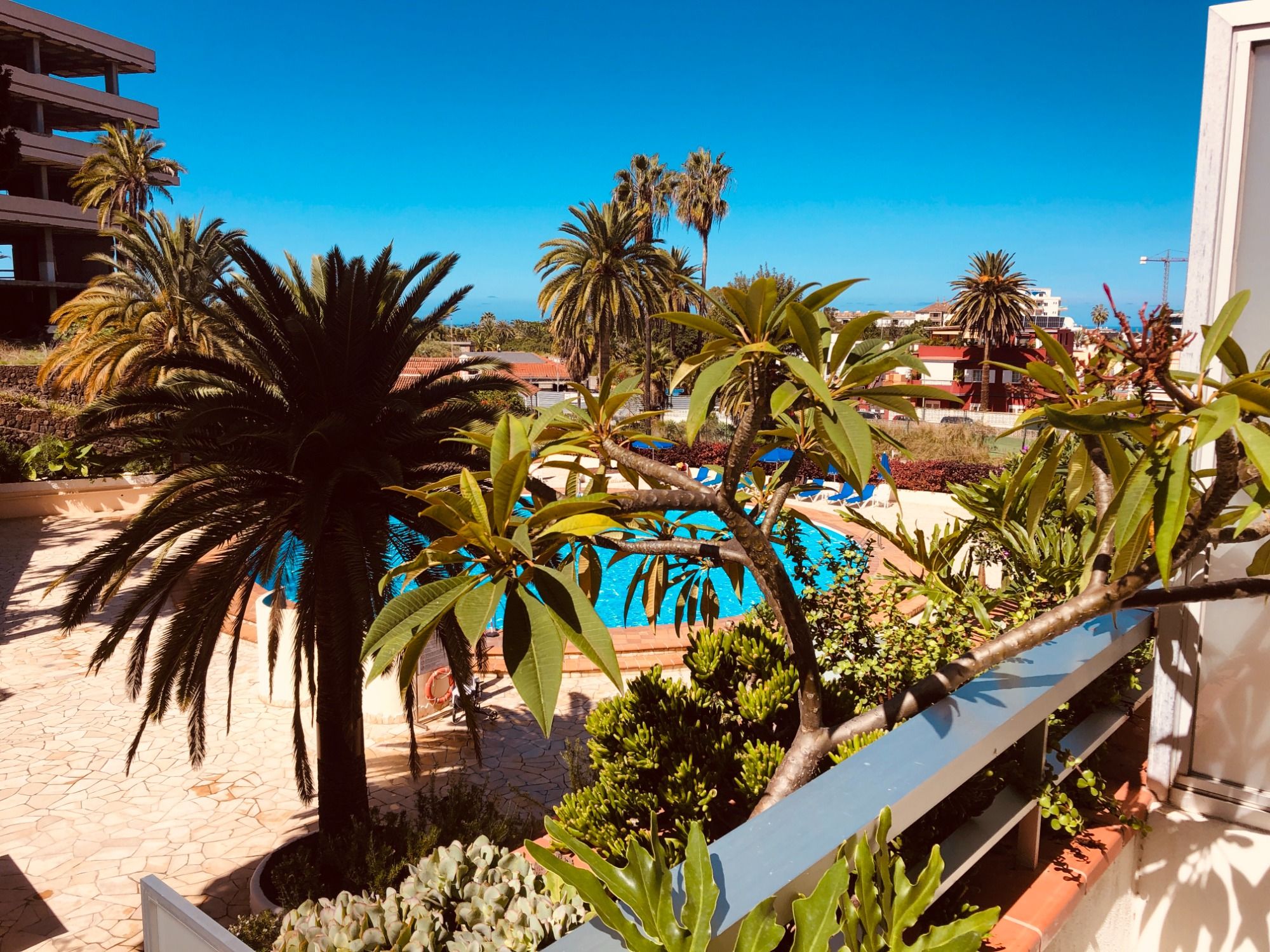 Für die Entspannung zwischendurch steht der im Winter beheizte Pool mit vielen Liegen und Sonnenschirmen, der Fitnessbereich oder natürlich der eigene Balkon des Apartment mit ca. 13m² zur Verfügung. Von hier haben Sie einen herrlichen Blick auf das Meer und über den Taoropark und die Stadt zum Meer und zum Teide gen Westen. Der Balkon ist mit einem Essplatz für 2 Personen und einer Markise ausgestattet.